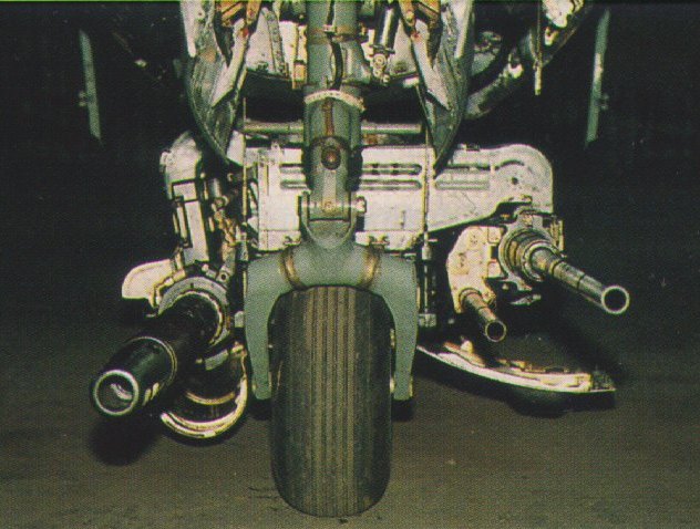 Late-production MiG-15s and the MiG-15bis had one 37mm N-37 cannon with 40 rounds and two 23mm NR-23 cannon with 80 rounds per gun. (Early production MiG-15s had NS-23 guns with about half the rate of fire of the NR-23.) The neat weapons tray under the nose could be lowered for reloading and maintance.
