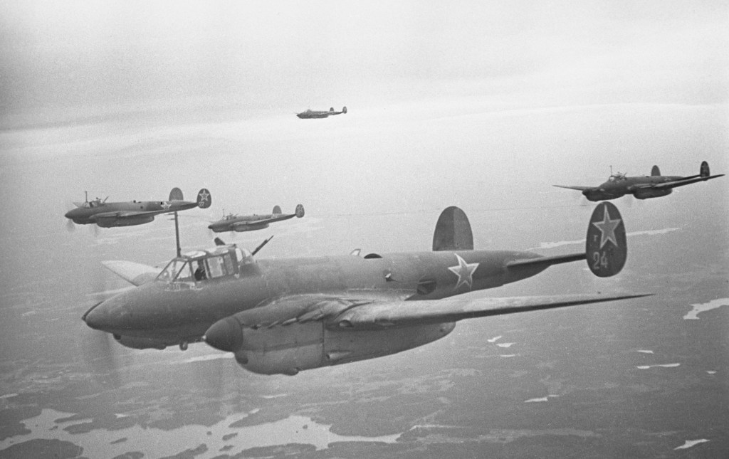 The Soviet long-range bomber force, known as the ADD, never rose to the same scale of ambition as the British and American strategic forces. The reality of a bitter land war fought over the large expanse of European Russia and Eastern Europe created an imperative demand for tactical aircraft, which resulted in the mass production of dedicated ground-attack aircraft such as the Il-2. Entirely in line with this, the most produced twin-engined bomber was the Petlyakov Pe-2, which had started out as a dive bomber development of an experimental high-altitude fighter. This evidently was a drastic change of requirements that required major redesign, but in the summer of 1940 the reports of German successes in France and the study of the Ju 88 (of which the USSR had obtained an example) created a sense of urgency, and Samolyet 100 had the merit that it had already flown and demonstrated good performance. The decision forced the imprisoned engineers of the NKVD-controlled “special design bureau” to work night shifts to complete new drawings in the required 45 days. This rushed program predictably caused numerous teething troubles, so that only a small number of Pe-2s were operational at the time of the German attack in June 1941. The type largely failed as a dive bomber but quickly proved its value as a light bomber, with a speed at low altitude that made it hard to intercept, and a bomb load of 600 kg (maximum 1000 kg). The VVS would receive 10,574 Pe-2s during the war. The “Peshka” was a versatile tactical aircraft, but its fighter origins made it too small to fill a medium bomber role. The gap in the Soviet arsenal was filled in large part by Lend-Lease supplies of the American A-20 and B-25 bombers.